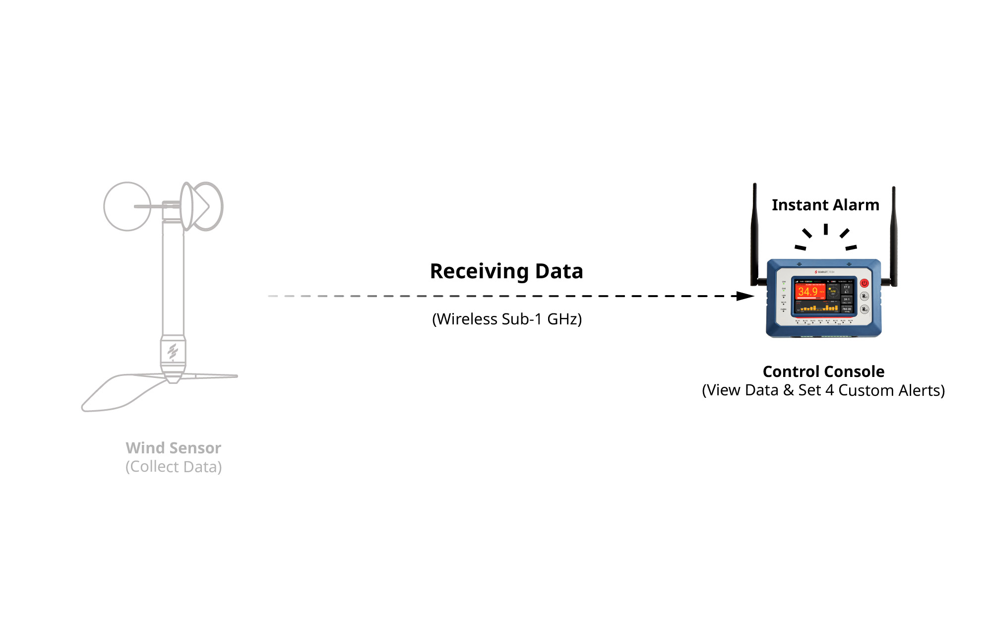 Reliable wind monitoring with ultra-long-range connectivity up to 1,000 meters — connect up to two rugged, IP67-rated wireless sensors to the WindPro Console for versatile wind detection in harsh or complex industrial environments.